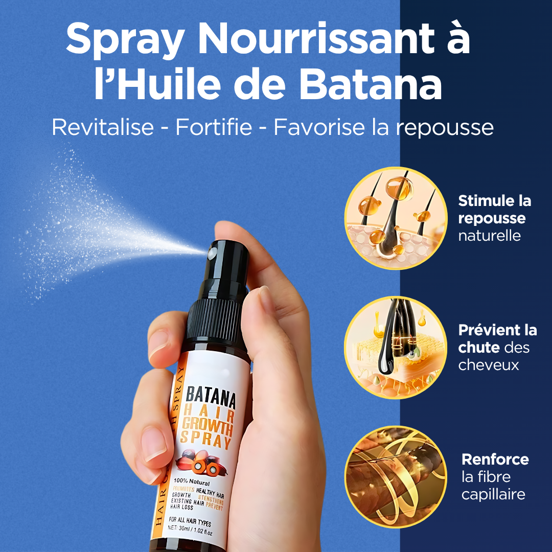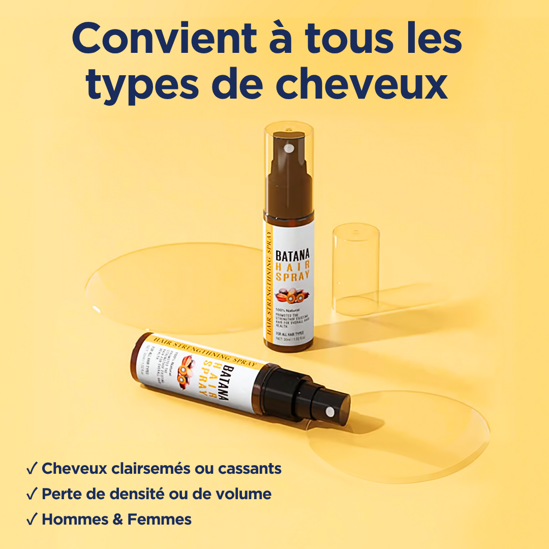 Un soin 100 % naturel formulé pour stimuler la pousse, fortifier la fibre capillaire et freiner la chute. Riche en huile de Batana pure, ce spray pénÚtre en profondeur pour revitaliser vos cheveux dÚs la racine et leur redonner force, densité et brillance.